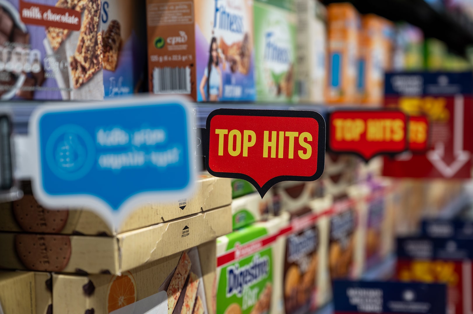 → At AB Vassilopoulos, the instore communication system is defined by the brand’s signature speech bubble. Designed to cut through the visual complexity of the supermarket environment.